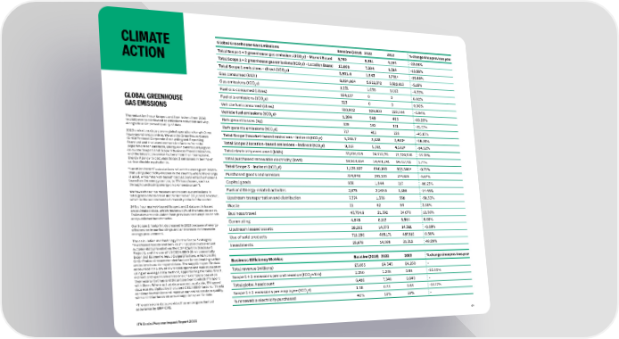 CLIMATE Global Greenhouse Gas Emissions Baseline (2019) 2022 2023 % change since previous year Total Scope 1 + 2 greenhouse gas emissions (tCO2e) – Market Based 8,740 5,381 4,194 -22.06% Total Scope 1 + 2 greenhouse gas emissions (tCO e) – Location Based 12,869 7,304 6,314 -13.56% ACTION 2 Total Scope 1 emissions – direct (tCO2e) 3,501.4 1,943 1,731* -10.89% Gas consumed (kWh) 6,694,664 5,822,372 5,522,613 ‑5.15% Gas emissions (tCO e) 1,231 1,058 1,012 ‑4.35% 2 Fuel oils consumed (litres) 154,137 0 0 0.00% Fuel oils emissions (tCO e) 323 0 0 0.00% GLOBAL GREENHOUSE 2 GAS EMISSIONS Vehicle fuel consumed (litres) 510,902 229,600 220,544 ‑3.94% Vehicle fuel emissions (tCO e) 1,204 549 493 -10.20% 2 The reduction in our Scope 1 and 3 emissions from 2022 Refrigerant losses (kg) 339 192 131 ‑31.77% to 2023 can be attributed to emissions reduction activity, alongside an improved quality of data. Refrigerants emissions (tCO e) 717 412 226 ‑45.15% 2 2023 emissions data covers global operations for which we Total Scope 2 market-based emissions – indirect (tCO e) 5,238.7 3,438 2,463* -28.36% have operational control. We use the Greenhouse Gases 2 (GHG) Protocol Corporate Accounting and Reporting Total Scope 2 location-based emissions – indirect (tCO e) 9,367 5,361 4,582* -14.52% Standard and the latest conversion factors from the 2 Department for Business, Energy & Industrial Strategy to Total electricity consumed (kWh) 33,816,618 24,610,751 21,324,106 ‑13.35% calculate Scope 1 and Scope 3 Business Travel emissions, and the latest conversion factors from the International Total purchased renewable electricity (kWh) 19,509,654 14,471,241 14,727,711 1.77% Energy Agency to calculate Scope 2 emissions in tonnes of carbon dioxide equivalents. Total Scope 3 – indirect (tCO e) 1,139,607 840,149 833,546* -0.79% “Location‑based” calculations reflect the average emissions 2 that using electricity creates in the country where the energy Purchased goods and services 314,848 291,120 274,626 ‑5.67% is used, while “market‑based” calculations reflect emissions based on the energy contracts ITV has chosen, such as Capital goods 836 1,844 217 ‑88.23% through purchasing energy on a renewable tariff. We have chosen to measure and report our emissions in Fuel and Energy‑related activites 2,675 2,169.5 1,856 ‑14.45% total gross emissions in metric tonnes of CO2e per £ revenue, Upstream transportation and distribution 7,374 1,338 558 ‑58.33% which is the recommended intensity ratio for the sector. 24% of our market‑based Scope 1 and 2 data set is based Waste 21 62 64 2.88% on estimated data, which makes up 1% of the total data set. Business travel 43,754.6 21,392 24,078 12.56% Estimates are calculated from previous consumption trends and published benchmarks. Commuting 4,848 8,113 8,564 5.56% Our Scope 2 footprint decreased in 2023 because of energy efficiencies in our buildings and an increase in renewable Upstream leased assets 28,282 14,373 14,361 ‑0.08% energy procurement. The calculation methodology for the Scope 3 category Use of sold products 711,290 485,171 487,910 0.56% “Purchased Goods and Services” in 2023 includes actual Investments 25,678 14,568 21,312 46.29% supplier data provided via the CDP (Carbon Disclosure Project), and the use of V6 CEDA EEIO (Environmentally Extended Economic Input Output) factors, which are the GHG‑Protocol recommended factors for estimating carbon Business Efficiency Metrics Baseline (2019) 2022 2023 % change since previous year emissions based on spend data. The supplier‑specific data accounted for 3.5% of ITV’s total spend and was calculated Total revenue (millions) £3,885 £4,345 £4,260 ‑ using an average data method, apportioning the total direct, indirect and upstream emissions of a company based on Scope 1 + 2 emissions per unit revenue (tCO e/£m) 2.250 1.238 0.98 ‑20.50% their yearly revenue and the proportion to which ITV spent 2 with them. Where actual data was not available, ITV spend Total global headcount 6,416 7,346 6,640 ‑ data was multiplied by the latest CEDA EEIO factors. ITV will continue to monitor and improve our emissions data quality, with an initial focus on actual supplier‑specific data. Scope 1 + 2 emissions per employee (tCO2e) 1.36 0.73 0.63 ‑13.77% *The emissions data provided has undergone limited % renewable electricity purchased 40% 58% 69% ‑ assurance by ERM CVS. ITV Social Purpose Impact Report 2023 64