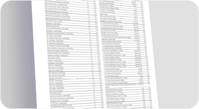 238 ITV plc Annual Report and Accounts 2023 ITV plc Annual Report and Accounts 2023 239 F I SUBSIDIARY UNDERTAKINGS AND INVESTMENTS NAN C I AL Wholly-owned subsidiary undertakings of the Company at 31 December 2023, all of which are wholly owned (directly or indirectly) Company Name Country % Holding Company Name Country % Holding S T and incorporated and registered where stated.Mammoth Screen (MD) Limited (1)(a) UK 100 ITV Services Pty Ltd (26)(a) Australia 100 A T Mammoth Screen (MD2) Limited (1)(a) UK 100 ITV Studios Australia Pty Limited (26)(a) Australia 100 E M Company NameCountry% HoldingCompany NameCountry% HoldingMammoth Screen (MIE) Limited (1)(a) UK 100 ITV Studios Global Distribution Pty Limited (26)(a) Australia 100 E N 12 Yard Productions (Investments) Limited (1)(a)UK100International Television Enterprises London Limited (1)(a)(d)UK100Mammoth Screen (NC) Limited (1)(a)UK100ITV SVOD Australia Pty Limited (26)(a)Australia 100 T 12 Yard Productions Limited (1)(a)UK100ITC Distribution (1)(a)UK100Mammoth Screen (Pol2) Limited (1)(a)UK 100 Totally Full Frontal Productions Pty Limited (26)(a) Australia 100 S A.C.E. (1988) Limited (1)(a)UK100ITC Entertainment Group Limited (1)(a)UK100Mammoth Screen (Pol3) Limited (1)(a)UK100 ITV Holdings (Cayman) Limited (27)(a) Cayman 100 Back Productions Limited (7)(a)UK100ITC Entertainment Holdings Limited (1)(a)UK100Mammoth Screen (Pol4) Limited (1)(a)UK100 Islands Big Talk Alone Limited (1)(a)UK100ITV (Scotland) Limited (20)(a)UK100Mammoth Screen (Pol5) Limited (1)(a)UK 100 ITV Studios Denmark Holdings Aps (73)(a) Denmark 100 Big Talk Cold Feet Limited (1)(a)UK100ITV 112 Limited (9)(a)UK100Mammoth Screen (Poldark) Limited (1)(a)UK 100 United Productions ApS (74)(a) Denmark 100 Big Talk Friday Limited (1)(a)UK100ITV AdVentures Limited (1)(a)UK100Mammoth Screen (QV) Limited (1)(a)UK 100 ITV Studios Finland Oy (40)(a) Finland 100 Big Talk Goes Wrong Limited (1)(a)UK100ITV Alder Limited (1)(a)UK100Mammoth Screen (Serpent) Limited (1)(a)UK100 Granada (Fiji) Pte Ltd. (48)(a) Fiji 100 Big Talk Horseface (1)(a)UK100ITV Archie Limited (1)(a)UK100Mammoth Screen (TJ) Limited (25)(a) UK 100 ITV Studios France Holdings SAS (64)(a) France 100 Big Talk I Hate You Limited (1)(a)UK100ITV Barking Limited (1)(a)UK100Mammoth Screen (Tower) Limited (1)(a)UK100 ITV Studios TV France (64)(a) France 100 Big Talk Investments Limited (1)(a)UK100ITV Breakfast Broadcasting Limited (1)(a)UK100Mammoth Screen (VF) Limited (1)(a) UK100ITV Studios France SAS (64)(a) France 100 Big Talk Living the Dream Limited (1)(a)UK100ITV Breakfast Limited (1)(a)UK100Mammoth Screen (Vic3) Limited (1)(a)UK100Tangaro (51)(a) France 100 Big Talk Ludwig Limited (1)(a)UK100ITV Broadcasting Limited (1)(a)UK100Mammoth Screen (WOF) Limited (1)(a)UK 100 Phara Prod International (51)(a) France 100 Big Talk Offenders Limited (1)(a)UK100ITV Central Limited (1)(a)UK100Mammoth Screen (WOF2) Limited (25)(a)UK 100 Tetra Media Studios SAS (51)(a) France 100 Big Talk Peacock Limited (1)(a)UK100ITV Consumer Limited (1)(a)UK100Mammoth Screen (WOTW) Limited (1)(a)UK 100 Bildergarten Entertainment GmbH (55)(a) Germany 100 Big Talk Pictures Limited (1)(a)UK100ITV DC Trustee Limited (1)(a)UK100 ITV Studios Germany GmbH (28)(a) Germany 100 Mammoth Screen Ltd (1)(a) UK 100 Big Talk Studios Limited (1)(a)UK100ITV Digital Channels Limited (1)(a)UK100 ITV Studios Germany Holdings GmbH (28)(a) Germany 100 Metavision Limited (1)(a) UK 100 Boom Cymru TV Ltd (5)(a)UK100ITV Duneen Limited (1)(a)UK100 ITV Studios Germany Fiction GmbH (55)(a) Germany 100 Millbank Studios (1)(a) UK 100 Boom Pictures Limited (1)(a)UK100ITV Enterprises Limited (1)(a)UK100 Oystercatcher GmbH (55)(a) Germany 100 Monumental Television Limited (1)(a) UK 100 Box Clever Technology Limited (1)(a)UK100ITV Grace Limited (1)(a)UK100 Windlight Pictures GmbH (44)(a) Germany 100 Morning TV Limited (1)(a) UK 100 Box Clever Trustees Limited (83)(a)UK100ITV Holdings Limited (1)(a)UK100 Elecrent Insurance Limited (21)(a) Guernsey 100 Moving Picture Company Films Limited (1)(a) UK 100 BritBox SVOD Limited (1)(a)UK100ITV International Channels Limited (1)(a)UK100 ITV Studios Global Distribution (Hong Kong) Limited (58)(a) Hong Kong 100 MT Ghosts Limited (1)(a) UK 100 Broad Street Films Limited (1)(a)UK100ITV Investments Limited* (1)(a)UK100 Talpa China Limited (57)(a) Hong Kong 100 MT Marlow Murder Club Limited (1)(a) UK 100 Campania Limited (1)(a)(k)UK100ITV JCDM Limited (1)(a)UK100 Armoza International Media Ltd (56)(a) Israel 100 MT Mrs Sidhu Limited (1)(a) UK 100 Carbon Media Limited (1)(a)UK100ITV LTVC (Scotland) Limited (20)(a)UK100 Channel Television Limited (22)(a) Jersey 100 MT Maryland Limited (1)(a) UK 100 Carlton Active Limited (1)(a)UK100ITV Mandrake Limited (1)(a)UK100 ITV London Properties Limited (23)(a) Jersey 100 MT Murder in Provence Limited (1)(a) UK 100 Carlton Cinema Limited (1)(a)UK100ITV Maternal Limited (1)(a)UK100 ITV Properties (Jersey) Limited (23)(a) Jersey 100 New Providence Productions Limited (1)(a) UK 100 Carlton Communications Limited* (1)(a)(d)UK100ITV Meridian Limited (1)(a)UK100 Global Music & Talent Agency B.V. (41)(a) Netherlands 100 Output Productions Limited (3)(a) UK 100 Carlton Content Holdings Limited (1)(a)UK100ITV Nightingale Limited (1)(a)UK100 ITV (Europe) Holdings B.V.* (41)(a) Netherlands 100 Oxford Scientific Films Limited (5)(a) UK 100 Carlton Film Distributors Limited (1)(a) UK100ITV Pension Scheme Limited (1)(a)(b)UK100 ITV Studios Global Entertainment B.V. (41)(a) Netherlands 100 Pickwick Packaging Limited (1)(a) UK 100 Carlton Finance Limited (1)(a)UK100ITV POS Limited (1)(a)UK100 ITV Studios Holding B.V.* (41)(a) Netherlands 100 Planet Woo Limited UK 100 Carlton Food Network Limited (1)(a)UK100ITV Properties (Developments) Limited (1)(a)UK100 ITV Studios Netherlands B.V. (42)(a) Netherlands 100 Planet V Limited (1)(a) UK 100 Carlton Programmes Development Limited (1)(a)UK100ITV Ralph and Katie Limited (1)(