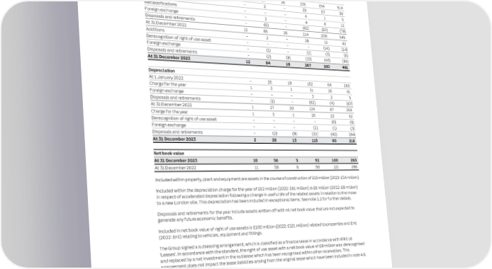 186 ITV plc Annual Report and Accounts 2023 ITV plc Annual Report and Accounts 2023 187 F I NOTES TO THE FINANCIAL STATEMENTS NAN SECTION 3: OPERATING ASSETS AND LIABILITIES CONTINUED C I AL Property, plant and equipment 3.3 Keeping The following note identifies the non-physical assets used by the Group to generate S T Property, plant and equipment can be analysed as follows: it simple revenue and profits. A Intangible T E assets These assets include formats and brands, customer contracts and relationships, M Vehicles, E Improvements to leasehold equipment contractual arrangements, licences, software development, film libraries and N Right T Freehold land and buildings and fittings of use goodwill. The cost of these assets is the amount that the Group has paid or, where S land and Long Short Owned assets Total there has been a business combination, the fair value of the specific intangible buildings £m £m £m £m £m £m assets that could be sold separately or which arise from legal rights. In the case of Cost goodwill, its cost is the amount the Group has paid in acquiring a business over and At 1 January 2022 12 87 26 235 154 514 above the fair value of the individual assets and liabilities acquired. The value of Additions – 2 – 33 57 92 goodwill is the ‘intangible’ value that comes from, for example, a uniquely strong Reclassifications – – – 4 1 5 market position and the outstanding productivity of its employees. Foreign exchange – 2 – 4 6 12 The value of intangible assets, with the exception of goodwill, reduces over the Disposals and retirements – (6) – (62) (10) (78) number of years the Group expects to use the asset, the useful economic life, via an At 31 December 2022 12 85 26 214 208 545 annual amortisation charge to the Consolidated Income Statement. Where there Additions – 2 – 28 12 42 has been a technological change or decline in business performance, the Directors Derecognition of right of use asset – – – – (14) (14) review the value of assets, including goodwill, to ensure they have not fallen below Foreign exchange – (1) – (2) (3) (6) their amortised value. Should an asset’s value fall below its amortised value, an additional impairment charge is made against profit. Disposals and retirements – (2) (8) (33) (43) (86) At 31 December 2023 12 84 18 207 160 481 This note explains the accounting policies applied and the specific judgements and estimates made by the Directors in arriving at the net book value of these assets. Depreciation At 1 January 2022 – 25 19 152 64 260 Accounting policies Charge for the year 1 3 1 31 25 61 Goodwill Goodwill represents the future economic benefits that arise from assets that are not capable of being individually Foreign exchange – – – 3 2 5 identified and separately recognised. Goodwill is stated at its recoverable amount being cost less any accumulated Disposals and retirements – (1) – (62) (4) (67) impairment losses and is allocated to the business to which it relates. At 31 December 2022 1 27 20 124 87 259 Charge for the year 1 3 1 25 22 52 All business combinations that have occurred since 1 January 2009 were accounted for using the acquisition Derecognition of right of use asset – – – – (6) (6) method. Under this method, goodwill is measured as the fair value of the consideration transferred (including the recognition of any part of the business not yet owned (non-controlling interests)), less the fair value of the Foreign exchange – – – (2) (1) (3) identifiable assets acquired and liabilities assumed, all measured at the acquisition date. The identification of Disposals and retirements – (2) (8) (32) (42) (84) acquired assets and liabilities and the allocation of the purchase price to them is considered a key judgement and is At 31 December 2023 2 28 13 115 60 218 based on the Group’s understanding and experience of the media business. Any contingent consideration expected to be transferred in the future is recognised at fair value at the acquisition date and recognised within other payables. Net book value Contingent consideration classified as an asset or liability that is a financial instrument is measured at fair value with changes in fair value recognised in the Consolidated Income Statement. The determination of fair value is based on At 31 December 2023 10 56 5 92 100 263 an estimate of discounted cash flows. The key assumptions take into consideration the probability of meeting each At 31 December 2022 11 58 6 90 121 286 performance target and the discount rate. Included within property, plant and equipment are assets in the course of construction of £19 million (2022: £34 million). Where less than 100% of a subsidiary is acquired, and call and put options are granted over the remaining interest, a non-controlling interest is initially recognised in equity at fair value, which is established based on the value of Included within the depreciation charge for the year of £52 million (2022: £61 million) is £6 million (2022: £8 million) the put option. A call option is recognised as a derivative financial instrument, carried at fair value. The put option in respect of accelerated depreciation following a change in useful life of the related assets in relation to the move is recognised as a liability within other payables, carried at the present value of the put option exercise price, and a to a new London site. This depreciation has been included in exceptional items. See note 2.2 for further details. corresponding charge is included in merger and other reserves. Any subsequent remeasurement of the put option liability is recognised within finance income or cost. Disposals and retirements for the year include assets written off with nil net book value that are not expected to generate any future economic benefits. Subsequent adjustments to the fair value of net assets acquired can only be made within 12 months of the acquisition date, and only if fair v