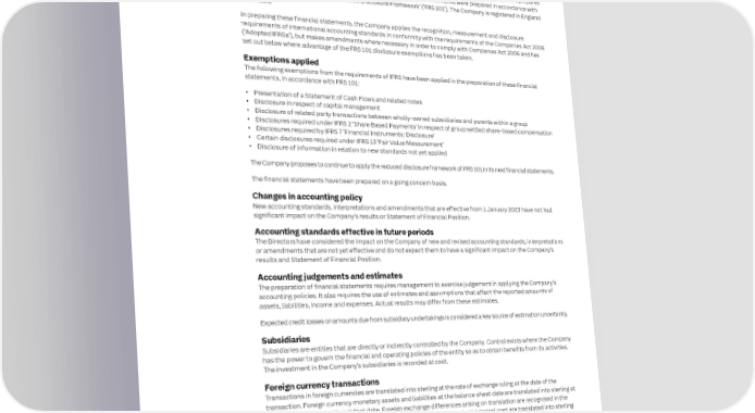 230 ITV plc Annual Report and Accounts 2023 ITV plc Annual Report and Accounts 2023 231 F I ITV PLC COMPANY FINANCIAL STATEMENTS CONTINUED NOTES TO THE ITV PLC COMPANY FINANCIAL STATEMENTS NAN C I AL Company Statement of Changes in Equity Note i In this This section sets out the notes to the ITV plc Company only financial S T section statements. Those statements form the basis of the dividend decisions made by A Share Share Other Retained Accounting T the Directors, as explained in detail in note viii below. The notes form part of the E capital premium reserves earnings Total policies M Note £m £m £m £m £m financial statements. E N Balance at 1 January 2023 vii/viii 403 174 29 2,377 2,983 T Total comprehensive income for the year S Profit for the year – – – 7 7 Basis of preparation Net gain on cash flow hedges and cost of hedging – – 5 – 5 The Company is a qualifying entity as it is a member of the ITV plc Group where ITV plc, the ultimate parent prepares publicly available consolidated financial statements. These financial statements were prepared in accordance with Total comprehensive income for the year – – 5 7 12 Financial Reporting Standard 101 ‘Reduced Disclosure Framework’ (‘FRS 101’). The Company is registered in England Transactions with owners recorded directly in equity and Wales. Contributions by and distributions to owners In preparing these financial statements, the Company applies the recognition, measurement and disclosure Issue of shares 3 – – – 3 requirements of international accounting standards in conformity with the requirements of the Companies Act 2006 Equity dividends – – – (201) (201) (‘Adopted IFRSs’), but makes amendments where necessary in order to comply with Companies Act 2006 and has Movements due to share-based compensation – – – 16 16 set out below where advantage of the FRS 101 disclosure exemptions has been taken. Tax on items taken directly to equity – – – 1 1 Total transactions with owners 3 – – (184) (181) Exemptions applied Balance at 31 December 2023 406 174 34 2,200 2,814 The following exemptions from the requirements of IFRS have been applied in the preparation of these financial statements, in accordance with FRS 101: Share Share Other Retained • Presentation of a Statement of Cash Flows and related notes capital premium reserves earnings Total • Disclosure in respect of capital management Note £m £m £m £m £m • Disclosure of related party transactions between wholly-owned subsidiaries and parents within a group Balance at 1 January 2022 403 174 31 1,760 2,368 • Disclosures required under IFRS 2 ‘Share Based Payments’ in respect of group settled share-based compensation Total comprehensive income for the year • Disclosures required by IFRS 7 ‘Financial Instruments: Disclosure’ Profit for the year – – – 800 800 • Certain disclosures required under IFRS 13 ‘Fair Value Measurement’ Net loss on cash flow hedges and cost of hedging – – (2) – (2) • Disclosure of information in relation to new standards not yet applied Total comprehensive income for the year – – (2) 800 798 The Company proposes to continue to apply the reduced disclosure framework of FRS 101 in its next financial statements. Transactions with owners recorded directly in equity Contributions by and distributions to owners The financial statements have been prepared on a going concern basis. Equity dividends – – – (201) (201) Changes in accounting policy Movements due to share-based compensation – – – 19 19 New accounting standards, interpretations and amendments that are effective from 1 January 2023 have not had Tax on items taken directly to equity – – – (1) (1) significant impact on the Company’s results or Statement of Financial Position. Total transactions with owners – – – (183) (183) Accounting standards effective in future periods Balance at 31 December 2022 vii/viii 403 174 29 2,377 2,983 The Directors have considered the impact on the Company of new and revised accounting standards, interpretations or amendments that are not yet effective and do not expect them to have a significant impact on the Company’s results and Statement of Financial Position. Accounting judgements and estimates The preparation of financial statements requires management to exercise judgement in applying the Company’s accounting policies. It also requires the use of estimates and assumptions that affect the reported amounts of assets, liabilities, income and expenses. Actual results may differ from these estimates. Expected credit losses on amounts due from subsidiary undertakings is considered a key source of estimation uncertainty. Subsidiaries Subsidiaries are entities that are directly or indirectly controlled by the Company. Control exists where the Company has the power to govern the financial and operating policies of the entity so as to obtain benefits from its activities. The investment in the Company’s subsidiaries is recorded at cost. Foreign currency transactions Transactions in foreign currencies are translated into sterling at the rate of exchange ruling at the date of the transaction. Foreign currency monetary assets and liabilities at the balance sheet date are translated into sterling at the rate of exchange ruling at that date. Foreign exchange differences arising on translation are recognised in the profit and loss account. Non-monetary assets and liabilities measured at historical cost are translated into sterling at the rate of exchange on the date of the transaction. Borrowings Borrowings are recognised initially at fair value including directly attributable transaction costs, with subsequent measurement at amortised cost using the effective interest rate method. The difference between initial fair value and the redemption value is recorded in the profit and loss account over the period of the liability on an effective interest basis.