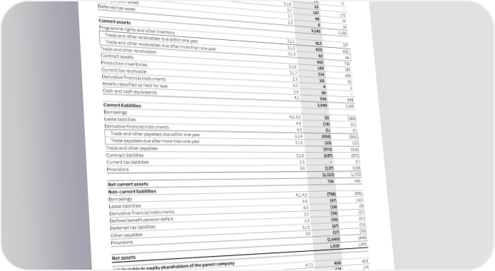 158 ITV plc Annual Report and Accounts 2023 ITV plc Annual Report and Accounts 2023 159 F I CONSOLIDATED STATEMENT OF FINANCIAL POSITION CONSOLIDATED STATEMENT OF CHANGES IN EQUITY NAN C I AL 31 December 2023 31 December 2022 Attributable to equity shareholders of the parent company S Note £m £m T Merger Non- A Share Share and other Translation Fair value Retained controlling Total T Non-current assets E capital premium reserves reserve* reserve earnings Total interests equity M Property, plant and equipment 3.2 263 286 Note £m £m £m £m £m £m £m £m £m E N Intangible assets 3.3 1,542 1,609 Balance at 1 January 2023 4.7 403 174 211 107 (1) 928 1,822 54 1,876 T Investments in joint ventures, associates and equity investments 3.5 68 130 S Total comprehensive Derivative financial instruments 4.3 1 2 income/(expense) Distribution rights 3.1.2 14 17 for the year Contract assets 3.1.6 13 – Profit/(loss) for the year – – – – – 210 210 (1) 209 Defined benefit pension surplus 3.7 187 172 Other comprehensive Other pension asset 3.7 48 47 (expense)/income Deferred tax asset 2.3 6 19 Revaluation of financial assets 4.7.4 – – – – (1) – (1) – (1) 2,142 2,282 Net gain on cash flow hedges and costs Current assets of hedging 4.7.3 – – – 12 – – 12 – 12 Programme rights and other inventory 3.1.1 413 377 Exchange differences on translation of foreign operations 4.7.3 – – – (38) – – (38) (4) (42) Trade and other receivables due within one year 3.1.3 630 692 Remeasurement loss on defined Trade and other receivables due after more than one year 3.1.3 62 44 benefit pension schemes 3.7 – – – – – (35) (35) – (35) Trade and other receivables 692 736 Income tax (charge)/credit on other Contract assets 3.1.6 189 185 comprehensive income/(expense) 2.3 – – – (3) – 9 6 – 6 Production inventories 3.1.7 234 493 Total other comprehensive expense – – – (29) (1) (26) (56) (4) (60) Current tax receivable 2.3 111 52 Total comprehensive Derivative financial instruments 4.3 4 2 (expense)/income for the year – – – (29) (1) 184 154 (5) 149 Assets classified as held for sale 3.4 66 – Transactions with owners, recorded Cash and cash equivalents 4.1 340 348 directly in equity 2,049 2,193 Contributions by and distributions Current liabilities to owners Borrowings 4.1, 4.2 (5) (289) Issue of shares 4.7.1 3 – – – – (2) 1 – 1 Lease liabilities 4.6 (18) (21) Equity dividends – – – – – (201) (201) (1) (202) Derivative financial instruments 4.3 (1) (7) Movements due to share-based Trade and other payables due within one year 3.1.4 (950) (901) compensation 4.8 – – – – – 16 16 – 16 Trade payables due after more than one year 3.1.5 (25) (17) Movements in the employee benefit Trade and other payables (975) (918) trust – – – – – (5) (5) – (5) Contract liabilities 3.1.6 (187) (372) Tax on items taken directly to equity 2.3 – – – – – (2) (2) – (2) Current tax liabilities 2.3 – (7) Total transactions with owners 3 – – – – (194) (191) (1) (192) Provisions 3.6 (137) (139) Changes in non-controlling interests 4.7.6 – – – – – 1 1 (6) (5) (1,323) (1,753) Balance at 31 December 2023 4.7 406 174 211 78 (2) 919 1,786 42 1,828 Net current assets 726 440 * See note 4.3 for further breakdown of Translation Reserve, including Hedging Reserve and Cost of Hedging Reserve Non-current liabilities Borrowings 4.1, 4.2 (758) (541) Lease liabilities 4.6 (97) (111) Derivative financial instruments 4.3 (16) (8) Defined benefit pension deficit 3.7 (26) (27) Deferred tax liabilities 2.3 (59) (57) Other payables 3.1.5 (67) (72) Provisions 3.6 (17) (30) (1,040) (846) Net assets 1,828 1,876 Attributable to equity shareholders of the parent company Share capital 4.7.1 406 403 Share premium 4.7.1 174 174 Merger and other reserves 4.7.2 211 211 Translation reserve 4.7.3 78 107 Fair value reserve 4.7.4 (2) (1) Retained earnings 4.7.5 919 928 Total equity attributable to equity shareholders of the parent company 1,786 1,822 Non-controlling interests 4.7.6 42 54 Total equity 1,828 1,876 The financial statements on pages 156 to 242 were approved by the Board of Directors on 7 March 2024 and were signed on its behalf by: Chris Kennedy Group CFO and COO