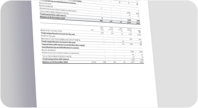 230 ITV plc Annual Report and Accounts 2023 ITV plc Annual Report and Accounts 2023 231 F I ITV PLC COMPANY FINANCIAL STATEMENTS CONTINUED NOTES TO THE ITV PLC COMPANY FINANCIAL STATEMENTS NAN C I AL Company Statement of Changes in Equity Note i In this This section sets out the notes to the ITV plc Company only financial S T section statements. Those statements form the basis of the dividend decisions made by A Share Share Other Retained Accounting T the Directors, as explained in detail in note viii below. The notes form part of the E capital premium reserves earnings Total policies M Note £m £m £m £m £m financial statements. E N Balance at 1 January 2023 vii/viii 403 174 29 2,377 2,983 T Total comprehensive income for the year S Profit for the year – – – 7 7 Basis of preparation Net gain on cash flow hedges and cost of hedging – – 5 – 5 The Company is a qualifying entity as it is a member of the ITV plc Group where ITV plc, the ultimate parent prepares publicly available consolidated financial statements. These financial statements were prepared in accordance with Total comprehensive income for the year – – 5 7 12 Financial Reporting Standard 101 ‘Reduced Disclosure Framework’ (‘FRS 101’). The Company is registered in England Transactions with owners recorded directly in equity and Wales. Contributions by and distributions to owners In preparing these financial statements, the Company applies the recognition, measurement and disclosure Issue of shares 3 – – – 3 requirements of international accounting standards in conformity with the requirements of the Companies Act 2006 Equity dividends – – – (201) (201) (‘Adopted IFRSs’), but makes amendments where necessary in order to comply with Companies Act 2006 and has Movements due to share-based compensation – – – 16 16 set out below where advantage of the FRS 101 disclosure exemptions has been taken. Tax on items taken directly to equity – – – 1 1 Total transactions with owners 3 – – (184) (181) Exemptions applied Balance at 31 December 2023 406 174 34 2,200 2,814 The following exemptions from the requirements of IFRS have been applied in the preparation of these financial statements, in accordance with FRS 101: Share Share Other Retained • Presentation of a Statement of Cash Flows and related notes capital premium reserves earnings Total • Disclosure in respect of capital management Note £m £m £m £m £m • Disclosure of related party transactions between wholly-owned subsidiaries and parents within a group Balance at 1 January 2022 403 174 31 1,760 2,368 • Disclosures required under IFRS 2 ‘Share Based Payments’ in respect of group settled share-based compensation Total comprehensive income for the year • Disclosures required by IFRS 7 ‘Financial Instruments: Disclosure’ Profit for the year – – – 800 800 • Certain disclosures required under IFRS 13 ‘Fair Value Measurement’ Net loss on cash flow hedges and cost of hedging – – (2) – (2) • Disclosure of information in relation to new standards not yet applied Total comprehensive income for the year – – (2) 800 798 The Company proposes to continue to apply the reduced disclosure framework of FRS 101 in its next financial statements. Transactions with owners recorded directly in equity Contributions by and distributions to owners The financial statements have been prepared on a going concern basis. Equity dividends – – – (201) (201) Changes in accounting policy Movements due to share-based compensation – – – 19 19 New accounting standards, interpretations and amendments that are effective from 1 January 2023 have not had Tax on items taken directly to equity – – – (1) (1) significant impact on the Company’s results or Statement of Financial Position. Total transactions with owners – – – (183) (183) Accounting standards effective in future periods Balance at 31 December 2022 vii/viii 403 174 29 2,377 2,983 The Directors have considered the impact on the Company of new and revised accounting standards, interpretations or amendments that are not yet effective and do not expect them to have a significant impact on the Company’s results and Statement of Financial Position. Accounting judgements and estimates The preparation of financial statements requires management to exercise judgement in applying the Company’s accounting policies. It also requires the use of estimates and assumptions that affect the reported amounts of assets, liabilities, income and expenses. Actual results may differ from these estimates. Expected credit losses on amounts due from subsidiary undertakings is considered a key source of estimation uncertainty. Subsidiaries Subsidiaries are entities that are directly or indirectly controlled by the Company. Control exists where the Company has the power to govern the financial and operating policies of the entity so as to obtain benefits from its activities. The investment in the Company’s subsidiaries is recorded at cost. Foreign currency transactions Transactions in foreign currencies are translated into sterling at the rate of exchange ruling at the date of the transaction. Foreign currency monetary assets and liabilities at the balance sheet date are translated into sterling at the rate of exchange ruling at that date. Foreign exchange differences arising on translation are recognised in the profit and loss account. Non-monetary assets and liabilities measured at historical cost are translated into sterling at the rate of exchange on the date of the transaction. Borrowings Borrowings are recognised initially at fair value including directly attributable transaction costs, with subsequent measurement at amortised cost using the effective interest rate method. The difference between initial fair value and the redemption value is recorded in the profit and loss account over the period of the liability on an effective interest basis.